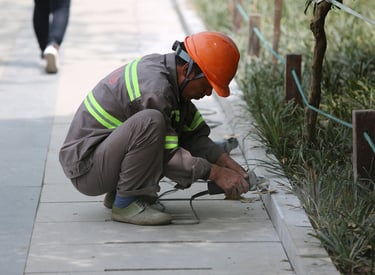 Schneeräumen und Streuen für sichere Gehwege im Winter.